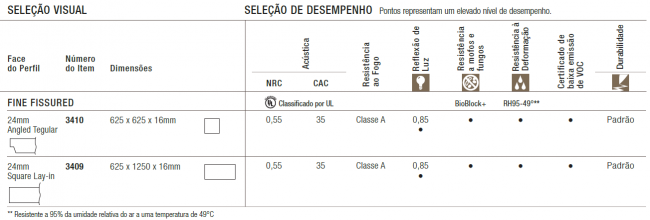 RH95-49° – resistência superior à deformação em condições de alta umidade, excluso acúmulo de água e aplicações em áreas externas*.