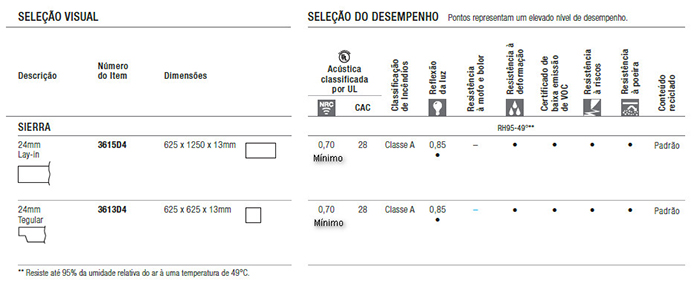 Possui uma garantia de 30 anos contra deformações visíveis (HumiGuard Plus) e contra o crescimento de fungos, mofo e bactérias (BioBlock Plus), quando usado com perfil de suspensão Armstrong.